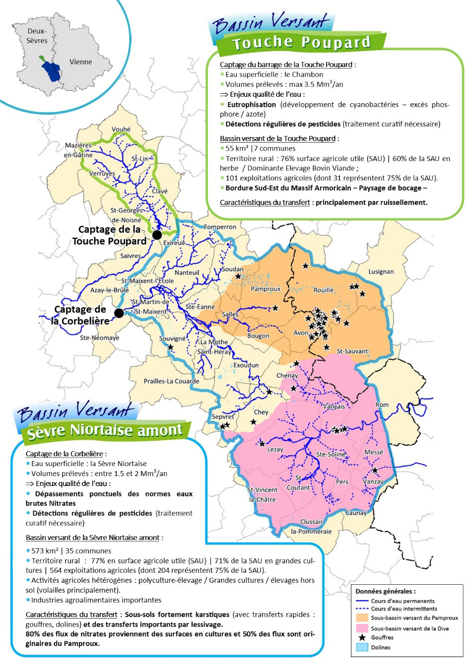 - Le bassin versant de la Sèvre Niortaise amont, alimentant le captage de La Corbelière (exploité par la Régie eau de la Communauté de communes Haut Val de Sèvre)